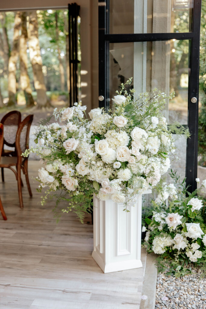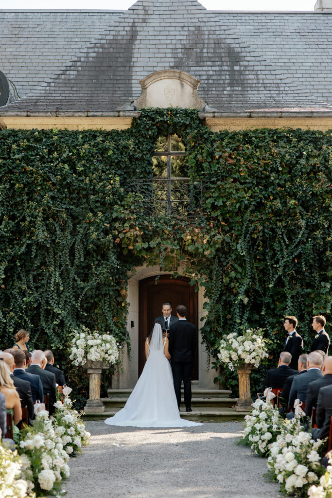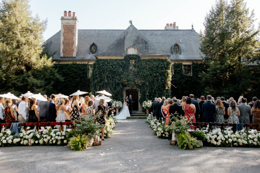 Greencrest Manor really is a destination and you could see it on the faces of guests as they entered on the long beautiful gravel entrance to the manor. This intimate European-styled manor is a magical oasis tucked into the countryside. Their ceremony was serene with parasols shielding guests from the sun, family reunions, and joy-filled conversations. A string quartet set the tone, the unity candle was lit, and their vows were celebrated.