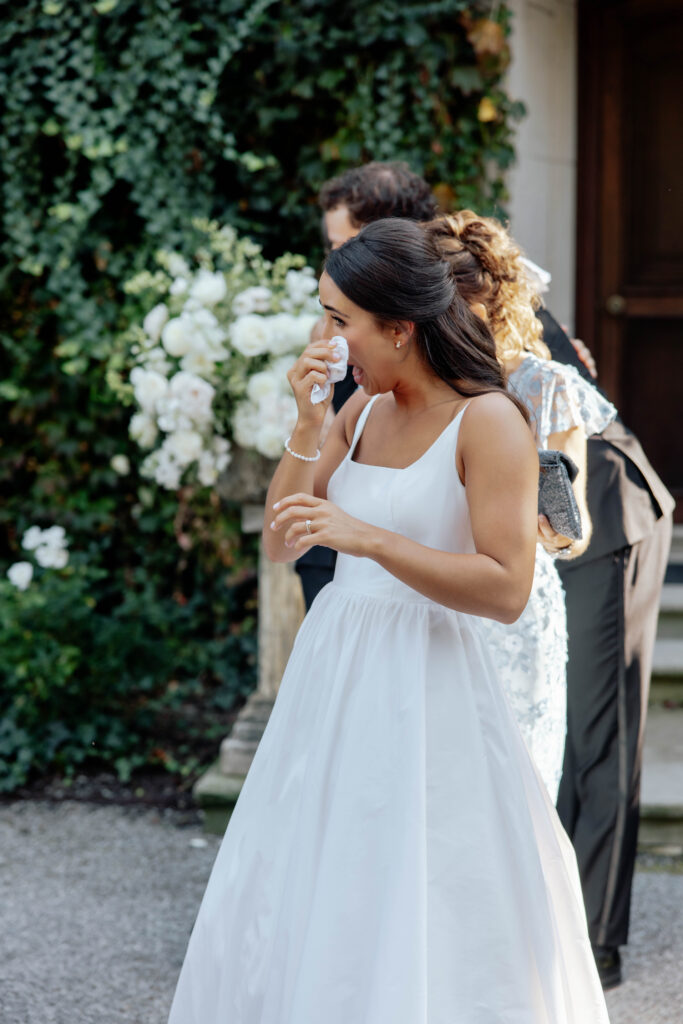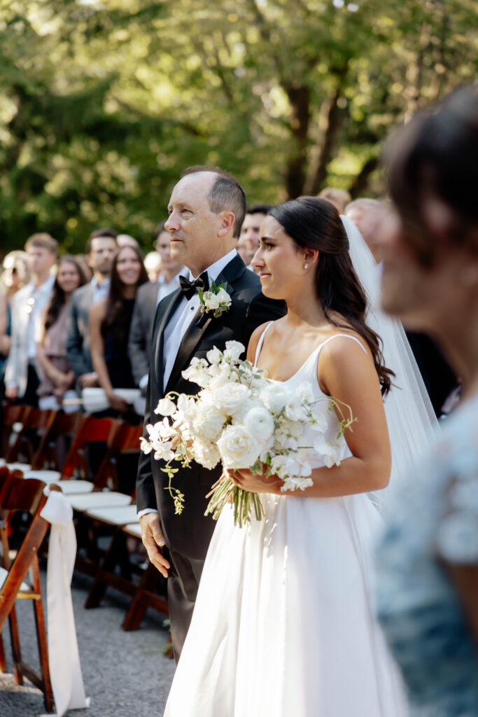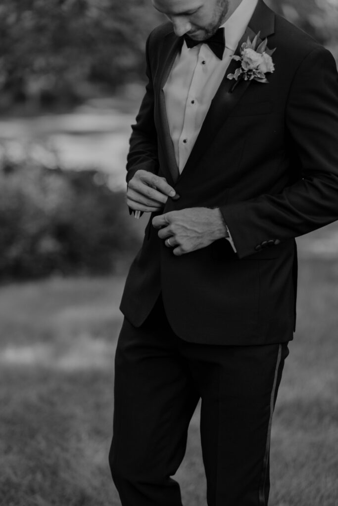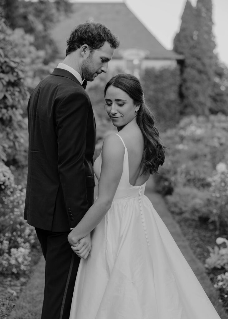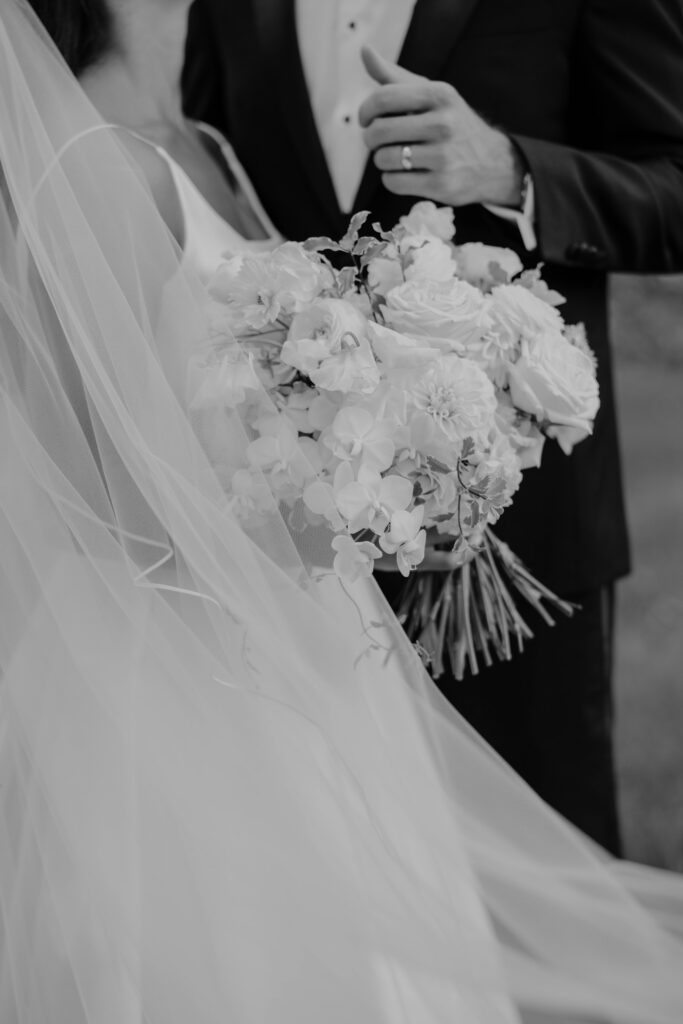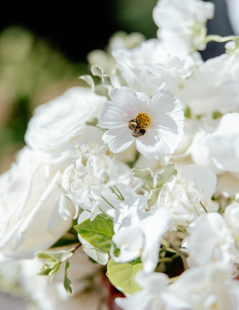 During the bridal portraits that followed their first look, a bee landed on Caroline’s bouquet to pollinate. It just settled right in among the petals, entirely unbothered, going about its quiet and purposeful work. And for a moment, the four of us — Caroline, Lance, Sam (with SJK Productions), and I — just watched it. There was something so gentle and so right about it. A tiny living thing drawn to something beautiful. I am always anticipating the in-between moments that tell a deeper narrative from the day. This was one of those. It was fleeting and almost magical.