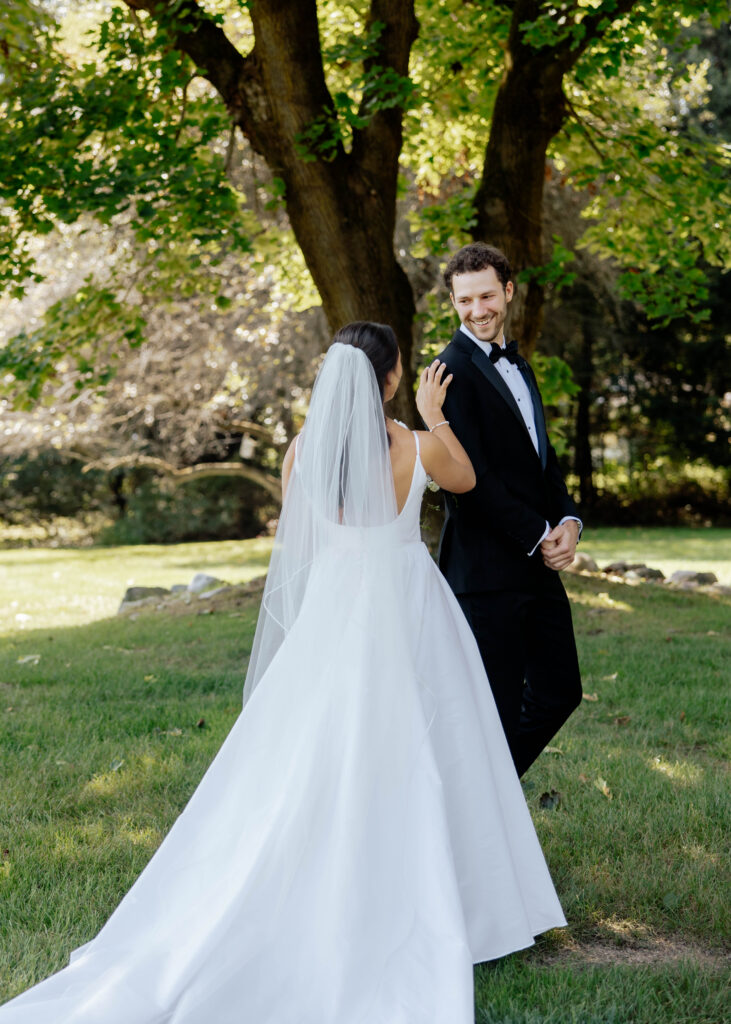 Lance waited for Caroline, shaded under this beautiful big tree. Their first look was so lovely and emotional, Caroline’s gown flowed effortlessly behind her as she walked to tap him on the shoulder. I’m such a big advocate for a first look. Not just because it makes a pretty schedule but because then you get to spend the entire day with your love. You get all the nervous energy out of the way and start making memories.